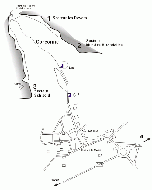 Až doma se dovídám od kamaráda Davida, znalce Francie, že v oblasti dříve skutečně se lezlo, cesty tam byly a přestože tato oblast nebyla vůbec známá ve srovnání s okolními a tudíž tam asi moc lezců nebývalo tak přesto Corconnovanům lezení vadilo a v místním referendu climbení na těchto skalách zakázali a nýty vytloukli.