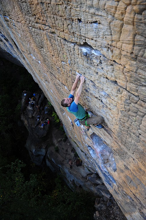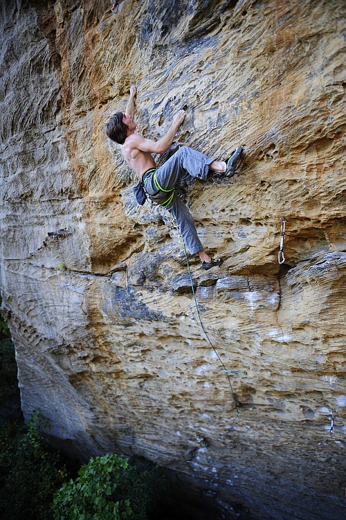 Daniel Woods v cestě Fifty words for pump, 5.14c, Bob Marley Crag
