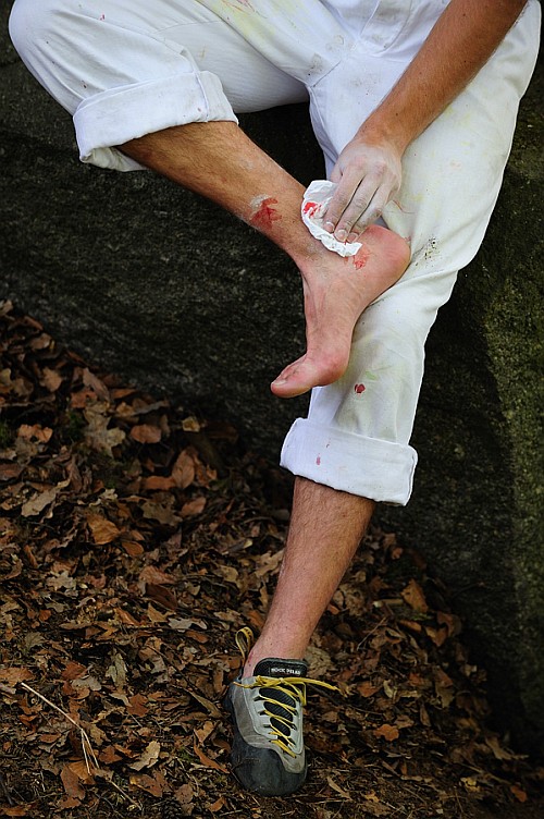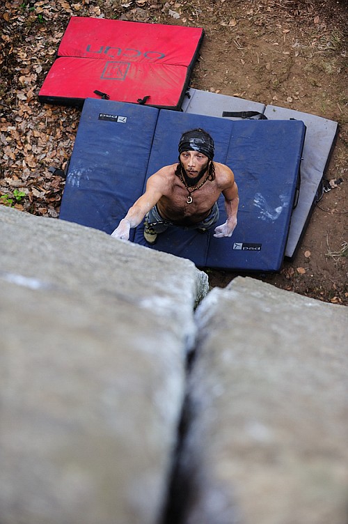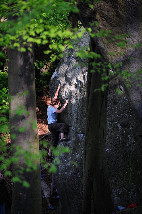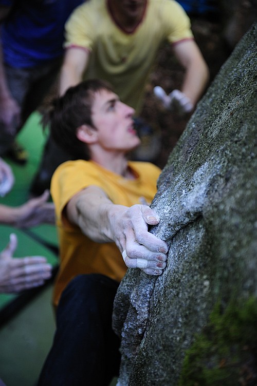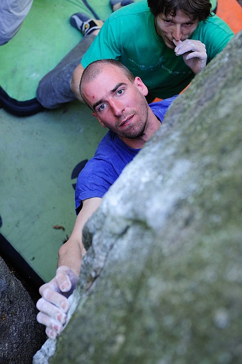 Lidé se rozutekli, špička se poskládala pod „ Noodledrem“ 8A/A+. Partička Němců okamžitě začala atakovat „ Ufobábu“, 14 let starý, do té doby nezopakovaný kousek Zdendy Resche. Dlouho však nikdo nic, a tak první vzrušení obstaral Adam Ondra, který se po kratším zkoušení prvním ostrým pokusem nezadržitelně blížil na vrchol „ Perného dne“ za 8B. Poslední krok ve výlezovém 7A, Adamovi smekává z oblé lišty pravá ruka a padá. Ozve se strašná dávka nadávek, vytryskne krev. Dva prsty totálně na kaši, zbytek slušně načatý. V ten okamžik jsem myslel, že Adam skončil, protože by to asi udělal kdokoli jinej… Za necelou hodinku už Adam zasedl do jednoho z nejúžasnějších boulderů Petrohradu, Ufobáby, které udělal první SD přelez za 8A+.