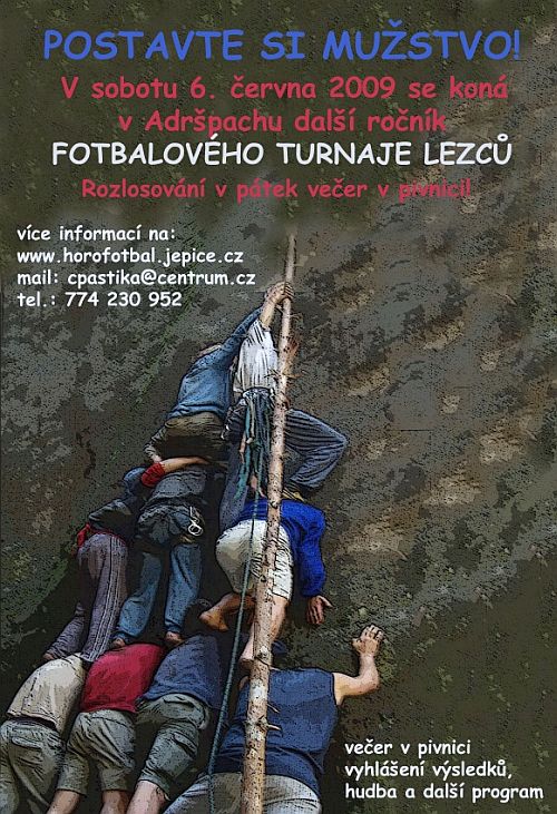 V sobotu 6. června 2009 se koná v Adršpachu další ročník Fotbalového turnaje lezců.