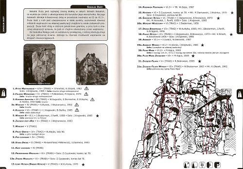 Kdo nevyhledává masy, může hledat zapadlejší sektory nebo zakoupit průvodce na sousední Rudawy Janowickie (tyto 4 oblasti najdete i v mapě na lezci). Pozor na obtížnost cest, od stupně 6 je tam všechno šestka, akorát že polské VI.1 je 7- UIAA atd.