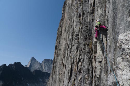 Ines Papert z Německa a Lisa Steurer z Rakouska udělaly novou cestu "Power of Silence" 400m, 7c+ na vrchol Middle Huey Spire v oblasti Cirque of the Unclimbables v Kanadě.