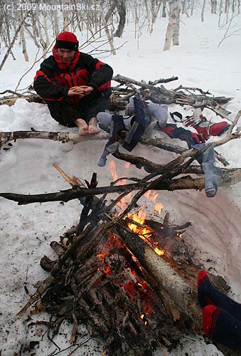 V lesích pod sopkou Ostraja jsme preventivně dělali oheň proti medvědům, hodil se i k sušení věcí
