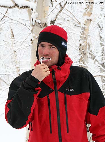 Nahoře foukal opravdu hodně silný vítr a kvůli velkému mrazu byla pocitová teplota hodně pod -30 stupňů. Sněhové podmínky celkově na lyžování nebyly v tuto dobu už moc dobré. Sněhu bylo sice hodně přes 2.5 m, problém byl však v mrazivém větru posledních dní, kdy podkladem byl hodně hrbolatý led. Ještě nikde jsem podobné sněhové útvary a povrch neviděl, určitě je to ovlivněno oceánským počasím a také podložím.