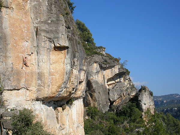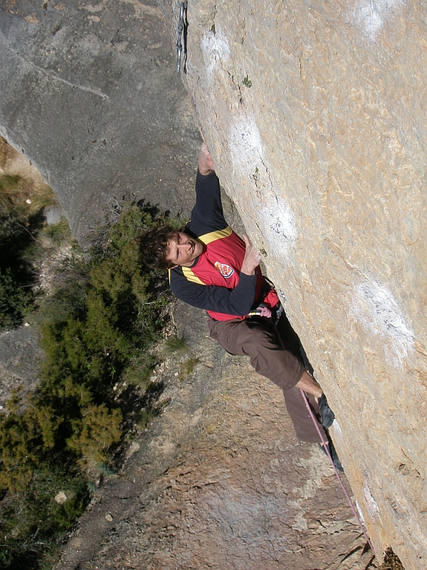Původně to měl být článek o úplně jiné oblasti. Počasí a souhra náhod rozhodla jinak a je to o Siuraně. Další zbytečný článek, napadlo mě, něco jako psát o Buoux. Pak jsem trochu popřemýšlel, a změnil názor. To jméno sice zná každý aspoň trochu lezec, ale kdo před odjezdem věděl do čeho jde? No to nebudete vědět ani po přečtení této slátaniny. Loni jsem do Siurany ani nechtěl, z toho, co jsem četl a viděl na fotkách, mi to přišlo málo převislé. Vypadalo to na pěkně malé chyty a hodně techniky. Těžší cesty se víc naklopí do záklonu, ale chyty zůstanou stejně mrňavé. Stará oblast, kde se utvářelo španělské sportovní lezení v 80. letech. A realita byla téměř taková, některá 7-béčka nelezitelná, 8-áčka prej normální, no, nevim. Loni 4 dny naprosto stačily. Letos jich mělo být víc. Měl jsem velké obavy, radši bych se viděl v Margalef nebo v nějakém krápníkovišti. Ale proč to nezkusit? Nevrátit se ke kořenům lezení a nenaučit se pohybu? Proč sbírat snadná čísla jinde, když tady se mohu zlepšit v tom, co mi nejde, a že toho je. Rozhodnutí se ukázalo být správné, Siurana je sice Siurana, ale má jistou schopnost, přinutí vás se vracet, i když máte milion důvodů jet úplně někam jinam. Je to magnet.