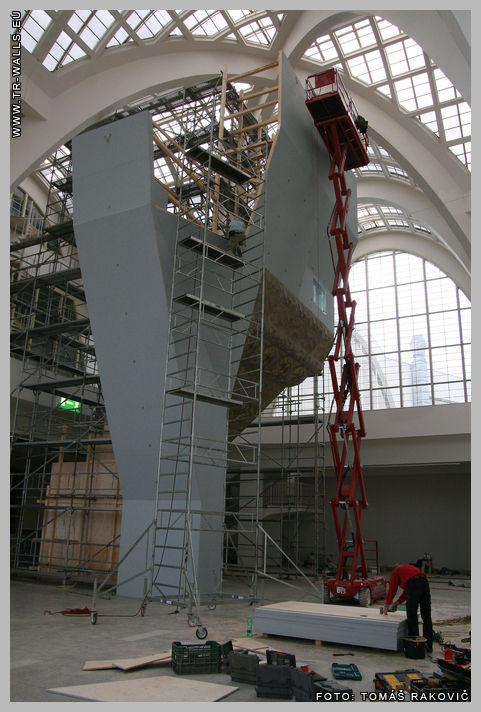 Dostali jsme několik fotek z výstavby stěny na brněnském výstavišti, kde se v rámci veletrhu Sport Life od pátku do soboty koná závod Světového poháru v lezení na obtížnost.