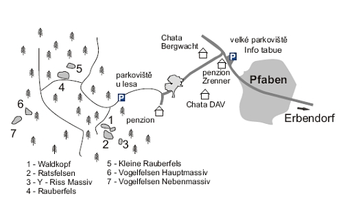 Pěkně udělané nákresy a aktualizovaný seznam cest byl prvotním impulsem k návštěvě. Kdysi jsme skály už navštívili, a dokonce zde na Lezci o nich i něco psali, ale už je to tak dávno, že ani vyhledávání nenalezlo článek pod zaprášeným nánosem bitů. Tak nás napadlo, udělat trochu reedici článku a také trochu oprášit průvodčíka zde na Lezci. Zbavit ho pavučin a chyb a dodat chybějící cesty. Ale pěkně po pořádku.