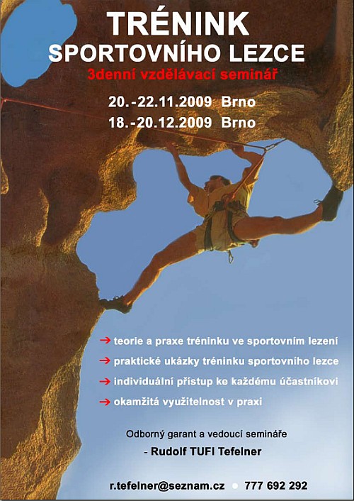 Náplní má být teorie a praxe tréninku ve sportovním lezení, praktické ukázky tréninku sportovního lezce, individuální přístup ke každému účastníkovi, okamžitá využitelnost v praxi.