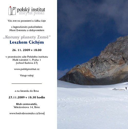 Z Polského institutu v Praze přišla pozvánka ´na posezení u šálku čaje s legendárním pokořitelem Mount Everestu a dobyvatelem „Koruny planety Země“ Leszkem Cichým´.