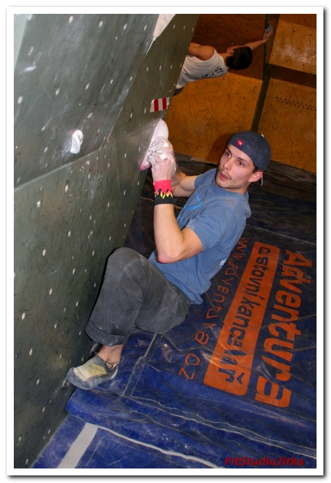 Ve třetí finálové cestě byli nejblíže topovému chytu  dva lezci. Jirka Švácha  do tohoto chytu skočil tak dynamicky, že mu zůstal v ruce a bylo nutno tento chyt vyměnit.