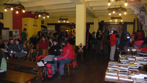 Standa Borák, tak popřál této knížce, kterou právě čerstvě vydává, hodně štěstí a ať se všem moc dobře čte. Počet účastníků nás trochu zaskočil a my tak vlastně vyprodali celou Luční boudu. Setkání proto proběhlo ve velkém sále hned vedle restaurace, ale i tam jsme se sotva vešli :-)