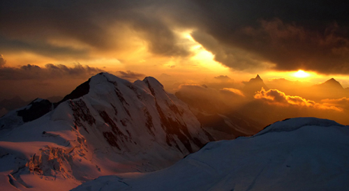 Košťál Martin: „Tajemná záře nás vyrušila z podvečerní siesty a byli jsme svědky nejkrásnějšího a zároveň nejděsivějšího západu slunce, jaký jsem kdy viděl prostě Mordor. Chata Margarita, Mt. Rosa, asi 4.8.2003.“