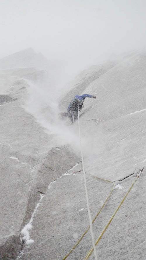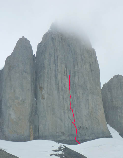 Výstup začali  cestou 'La Escobar De Dios' (850 m, VI A4 5.10+, Micka Fowler, 92). Po několika délkách odbočili doleva a napojili se do systémů spár a koutů. Počasí jim ale nepřálo a tak po 15 délkách (9  nových) zaveleli k ústupu.