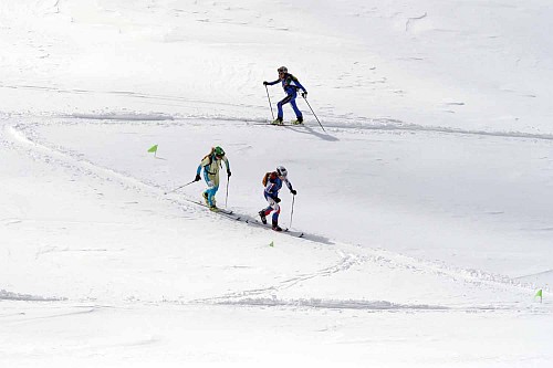 devatenáct juniorek a třináct kadetů a deset kadetek. První a poslední stoupání bylo úplně stejné jako trasa pro seniory, prostřední výstup Na prvním vrcholu Montmalús byl vítr v jednu chvíli tak silný, že některé závodníky porážel na zem. Pořadatelé dokonce uvažovali o zastavení závodu. Ve třech kategoriích nakonec zlato vybojovali stejní závodníci, jako v pondělním závodě Vertical Race. V kadetech si nejlépe počínali Louise Borgnet a Anton Palzer, v juniorkách si připsala na své konto druhou zlatou medaili Jennifer Fiechter. Pouze mezi juniory svoji první zlatou medaili vybojoval Robert Antonioli.