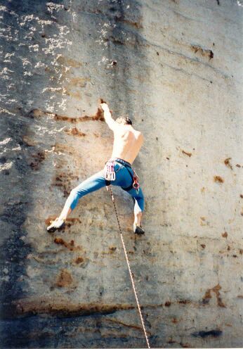 Na Jardovo článek se dá dát razítko ověřeno, správné, ostatně jako vždy.Dodám k Ruberzalsteige.Je to trochu netypická německá pískařina.Těžké místo 8 m nad kruhem, obdobnou cestu udělat též H.Richtr (před B.Arnoldem největší fenomén oblasti, mj. byl lézt i na Kozelce a od těch dob nám tam Němci lezou pravidelně)na Sommerwandu myslím že Fledermausweg.Jinak do té doby bylo snahou mít těžká místa nad kruhem a svého času se o těchto dvou cestách vědělo.Když jsme lezli Ruberzala tak jsem to nevěděl, ale míval jsem dobrý lezečky a všechny prsty na nohou , tak to tak nepřišlo.