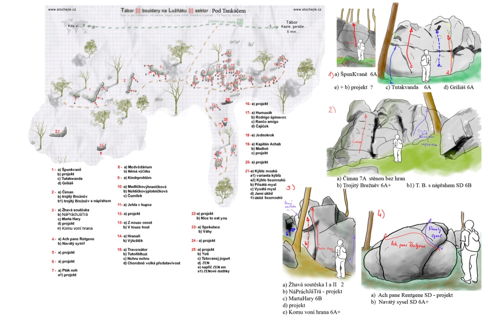 Zatim je připraveno okolo 100-ky směrů na 50-ti šutrech a další pořád vznikají. Klasifikace je