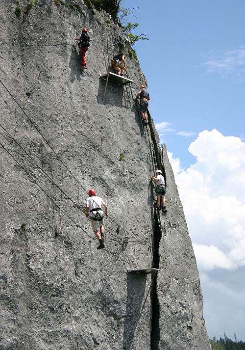 Metodika - výklad a praxe horských vůdců. Túry a výstupy: bouldering, lezení do 6. st. UIAA, slaňování, zajištěné cesty, VHT v oblastech - Ewige Wand, Predigtstuhl, Donnerkogel, Seewand, Traunstein, jižní stěna Dachsteinu.