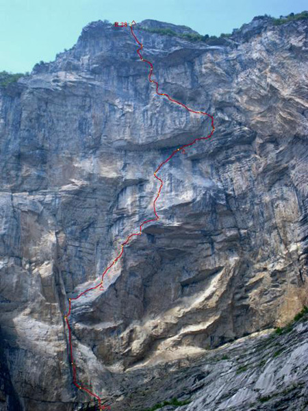 Brento Centro 8b, Monte Brento, Valle del Sarca. První přelez: David Lama & Jorg Verhoeven 05/2010