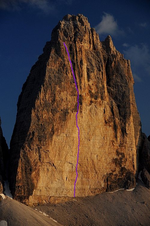 Název Erectissima je míněn jako roztomilá reminiscence na všechny ty dolomitské diretissimy a superdiretissimy, které označují nejpřímější linii k vrcholu „ve směru padajících kapek“.