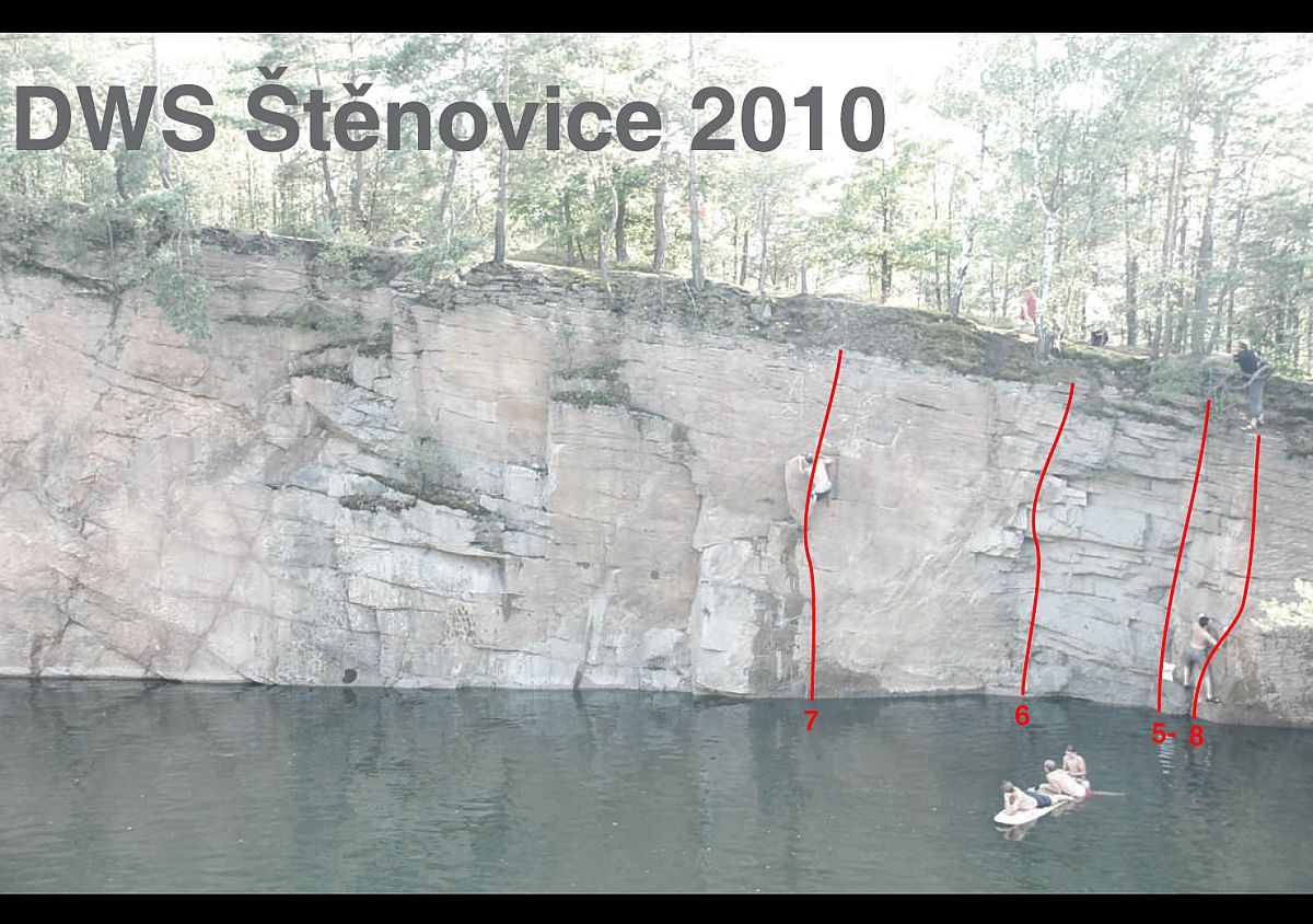 Štěnovice (k nalezení také v mapách na Lezci) se nacházejí jen pár km za Plzní směrem na Přeštice (Blovice) nedaleko dálnice Praha, Plzeň Rozvadov). A zde v kopci nad vesnicí najdete několik romantických zatopených lomů. Lomy, kde se dříve těžila žula, jsou již zatopené hlubokou vodou a lemovány místy hladkými převislými stěnami, prostě ideální místo pro lezení nad vodou.