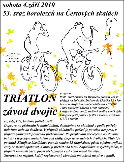 - Zatím největší závod jsme uspořádali hned následující rok, v devadesátém šestém, a oficiální název zněl: „Valašský železný horolezec“. Byl to právě triatlon, na který bychom v letošním roce chtěli navázat. Celý závod provázelo příjemné počasí a bezchybná organizace.