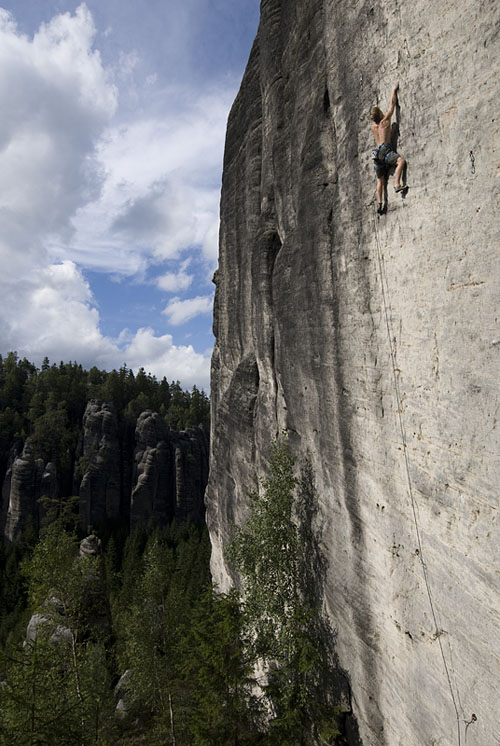 Ondra Beneš v cestě Černý Petr XIa, Teplické skály