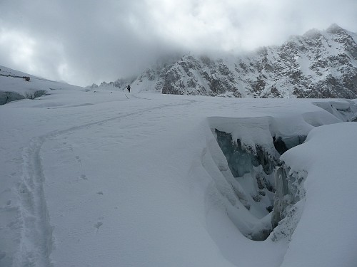 príchod z morény na ľadovec bol doslova vykúpením, konečne možme obuť lyže