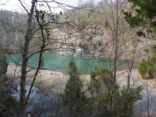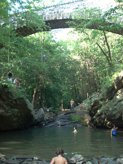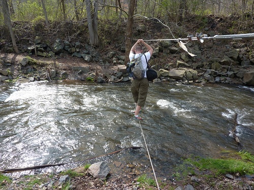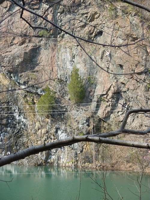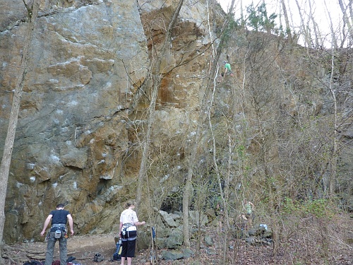 Kdyby jste se v tomhle okolí vyskytli na delší dobu, jako já, asi hodinku cesty severozápadně od města se nachází lezecká oblast Birdsboro. Je to jakýsi bývalý lom. Cesty jsou povětšinou odjištěné. Materiál dost lámavý. I tady je docela srandovní přístupová cesta. Musíte totiž dvakrát překonat řeku. V létě je celkem příjemné ji přebrodit, jelikož není tolik hluboká a je čistá a krásně osvěží. Ale brzy z jara nebo na podzim tu na Vás čeká opičí dráha v podobě dvou ocelových lan natažených nad sebou, kdy na jednom stojíte a druhého se nahoře přidržujete :-)