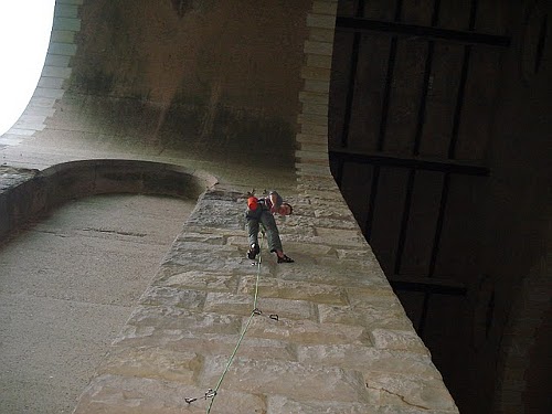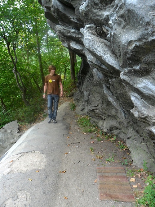 A jako poslední z městského lezení , mojí inspiraci pro tenhle článek, jsem si samozřejmě nechala na konec. Přímo uprostřed Wissahickon valley je schovaná malá skalka, nazvaná Livezey rock. Je už trochu větší, než na bouldrování. Upřímně bych to ani moc nedoporučovala, protože pád ze strmého kopce pod ní by asi nebyl moc příjemný. Vede k ní celkem zajímavá cesta po jakémsi obřím potrubí (viz. Foto). Můžete si tu hodit lano na jištění ze shora a vesele hopkat nahoru a dolů. Cesty asi nejsou nijak ohodnocené, ale na odreagování je to tam ideální.