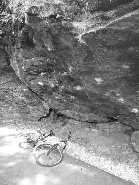 V tomto parku, u cesty podél řeky, je jeden asi nejznámější boulder. Denně ho míjí několik stovek, možná tisíců lidí, když si jdou zaběhat. Občas mi ty běhací lidičky, přijdou jako natažený na klíček. V jakoukoliv denní dobu sem přijdete, ať je to v pět ráno nebo v deset večer, vždycky tu potkáte někoho v poklusu.