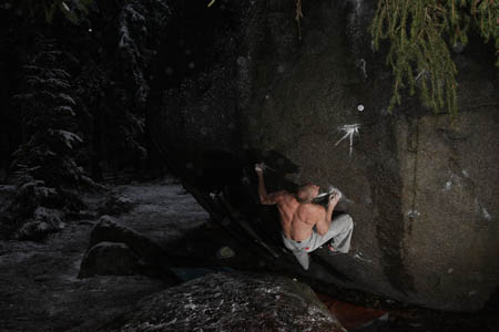 Petr Resch v „Knocking on heavens door“ - dvanáctý krok boulderu