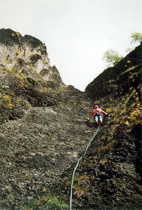 Ve žlabu se může držet voda, příliš to ale nevadí. Dá se tu dokonce bez větších potíží lézt, i když prší, protože terén je ukloněný a zdejší materiál dobře drží i za mokra.