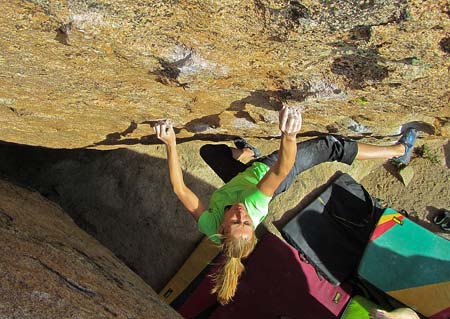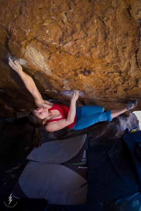 Ve stejné době, jen o něco dále na jih, ve slunečném Huecu Tanks přelézá další silná Američanka Alex Puccio boulder El techo de Los Tres B 8A. Je to její 12 boulder v této obtížnosti a těžší za posledních 12 měsíců!