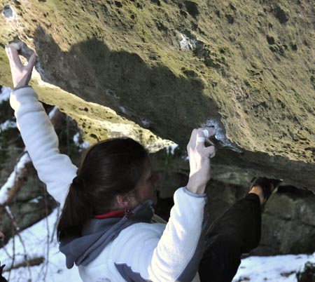 Conny Matthes zopakovala boulder Sea of green 8A+ v Tretbootwändchen ve Frankenjuře. Někdo tento boulder dokonce hodnotí jako 8B.