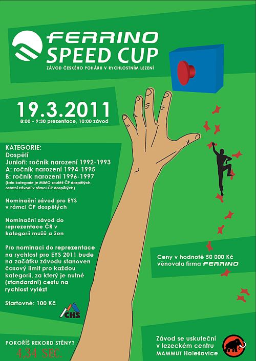 Na lezecké stěně Mammut v Holešovicích se 19. března 2011 uskuteční závod ČP Ferrino cup v lezení na rychlost pro dospělé, juniory a kategorie A, B.