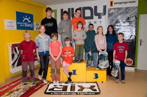 V neděli ráno (poté co dospěláci vstali a vyrazili na Petráč) se to začalo scházet - organizátoři, rodičové a hlavně děti - závodníci, kamarádi. Početný Slánský tým přijeli vyzkoušet soupeři z Kladna, Prahy, Stříbra a Plané. Nakonec se jim podařilo odvézt tři zlaté medaile, polovina jich ale zůstala i doma.