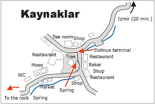 Oblast samotná se nachází jen coby kamenem dohodil od letiště (20 km). Z letiště se tedy musíte vydat směrem na část Izmiru zvaná Buca (Buča), přesněji na autobusovou stanici v centru této čtvrti nebo ještě lépe na náměstíčko, zvané Heykel s kruhovým objezdem a jezdeckou sochou Kemala Atatürka, odkud vyjíždí pravidelně několik minibusů a dolmušů přímo do Kaynaklaru. Autobusy vyjíždějí každou hodinu a cesta do Kaynaklar trvá asi 30 minut a vystupuje se úplně na konci celé trasy na náměstíčku v Kaynaklaru. (poznáte podle gigantických stromů) dolmuš je označen nápisem "Buca-Kaynaklar". Dolmuše odjíždějí až se naplní, tj. asi každou půlhodinu, jízda trvá 20' a stojí 1,5 YTL. Prokličkovat pulsujícím Izmírem není pro cizince úplně snadné, ale když víte kudy, cesta z letiště vám zabere slabé dvě hodiny.
