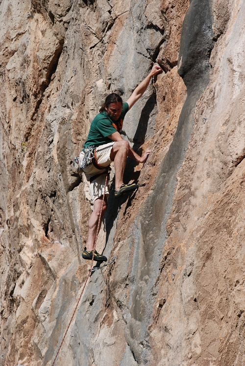 Místní lezec Erkin v cestě Zerdüst, 10-