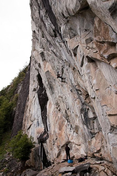 Září 2010, Svatý Václav vybízí ke čtyřdennímu lezení, ale doma prší, v Juře prší, a Arcu prší. Na poslední chvíli vyrážíme do Ticina. Tam sice prší taky, ale tičínská žula nezatéká. Hned první den experiment, sektor Russo. Nachází se poměrně vysoko v horách, lezení předchází půlhodinová cesta autem po horské silničce. Samotná vesnice Russo je tvořena stylovými domy se žulovou střechou a i prostředí skal je romantické.