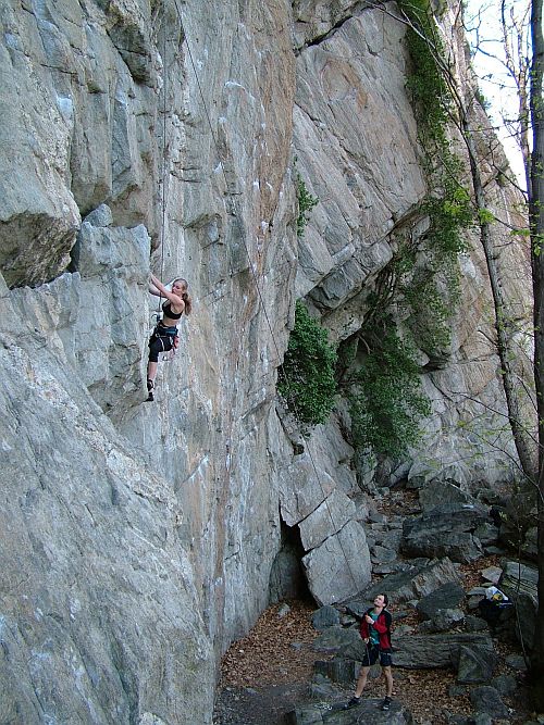 Samotné lezení ale bylo mírným zklamáním. V sektoru se sice nachází mnoho lehčích cest kolem 6c, ale ty jsou převážně v hodně ukloněných plotnách. Přestože bylo po dešti, plotny byly rozpečené od sluníčka a lezení na nich nebylo příjemné. Hezčí je lezení v podsektoru Makako, který navíc brzo odpoledne zapadá do stínu. Jsou tu dlouhé převislé cesty na bílé žule. Vyhlášené jsou prý především čtyři vytrvalostní 7b+. Z námi lezených cest určitě doporučujeme In groppa alla mula 7a.