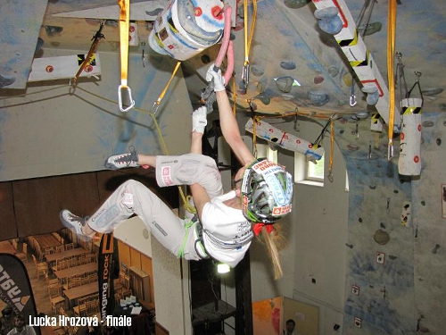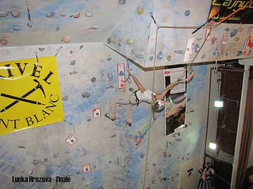 Slabší obsazení v ženské kategorii bohužel nezvrátil ani fakt, že holky měli startovné zdarma. Finálová cesta, jejíž charakter výrazně ovlivnila dispozice cca 7 metrů vysoké stěny začínala traverzem k fošně, kterou bylo třeba překonat pomocí čtyřek a dále linie stoupala pod blok, kde bylo zapotřebí ze spoďáku dosáhnout do chytu za hranou.