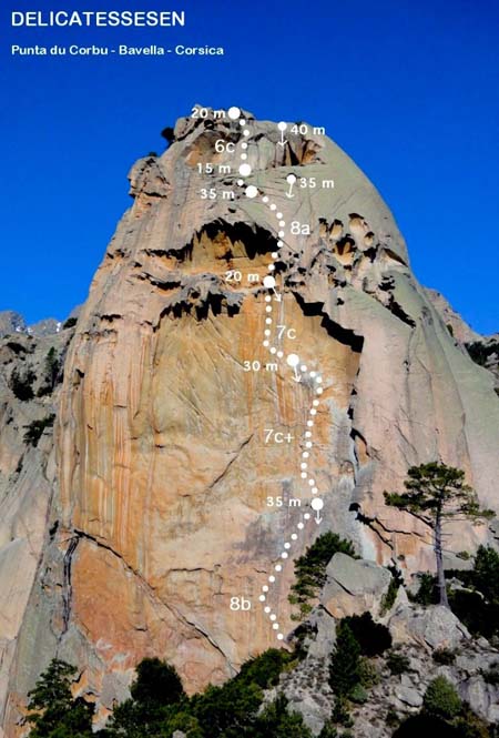 Tato "vícedélka" je z dílny Arnauda Petita a Stéphane Hussona z roku 1992. Nina Caprez a Cedric Lachat cestu zkoušeli už před třemi týdny, ale ze stěny je zakrátko vyhnal déšť.  Na Korsiku se vrátili před týdnem. Na svém blogu Nina píše, že první pokusy v první nejtěžší délce za 8b byly frustrující. Ve stěně nebyly stopy po magneziu a těžko si zase zvykali na kolmé až položené technické lezení. První délka také ztěžkla poté, co Cedric ulomil chyt v nejtěžším místě. Cedricovi se nakonec tato první délka podařila spojit, spojil i další délky 7c+, 7c a poslední, závěrečnou těžkou plotna za 8a, vylezl až na třetí pokus. Nina lezla ten den na druhém konci. V některých délkách se jí nedařilo zkrokovat pár míst, což jí dost zdeprimovalo. Ale ráno moudřejšího večera. Nina se do stěny vrátila plná elánu a na třetí pokus nejtěžší délku vylezla. Namotivovaná spojila i zbývající čtyři délky.