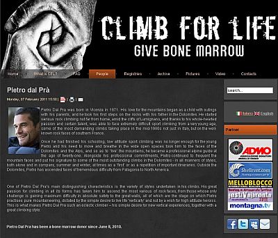 Stránky kampaně Climb for life s Pietrovo úvodním slovem