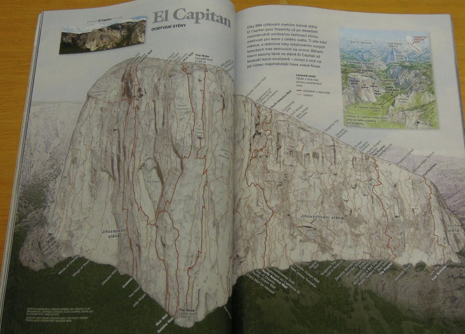 I když abych jen nehanil, článek je doprovázen působivým pelmelem pěkných profi fotografií a je tam taky pěkný nákres všech cest na El Capa.