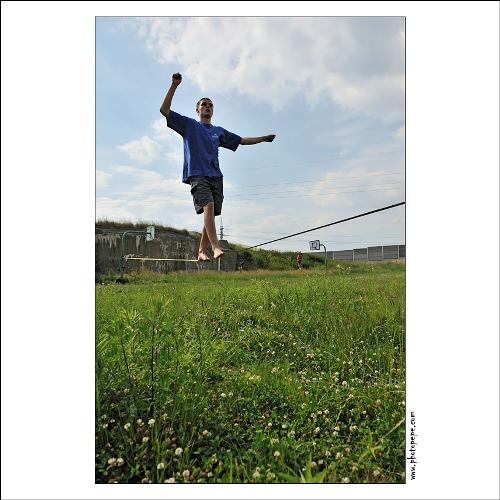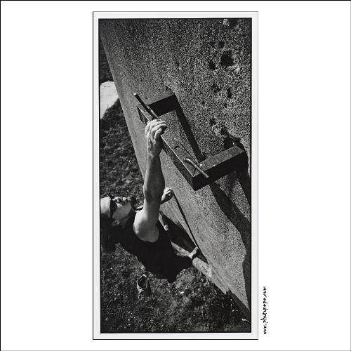 Jakub Sikora přechází do kolmé části v závodním traverzu 9+