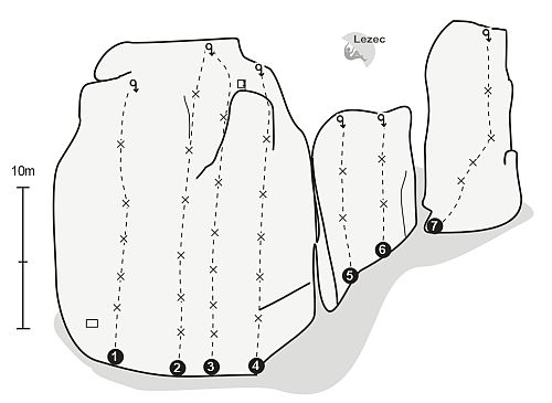 Na stěně je sedm cest z toho čtyři opravdu krásné, poměrně dlouhé cesty.