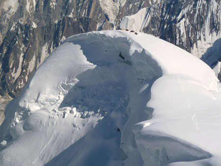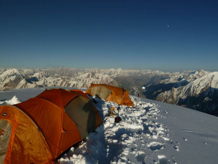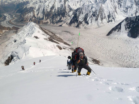 Po 2 dnech odpočinku znovu nahoru, počasí nic moc, ale postupně se lepší. 3 tábor na nejistém, převislém vrcholu boule. Na vrchol Spantiku vycházíme mezi 4 a 5 hod. ráno. Ze začátku je překvapivě velké rozsáhlé plato a pak závěrečný hřeben (asi 400 výškových m), kde již není co řešit ani kde bloudit. 13.7.2011 mezi 12 a 13 hod. jsme na vrcholu. Počasí přeje a výhledy jsou nádherné. Vidíme K2, Nanga Parbat, Rakaposh, Haramosh, ... kopce všude kolem nás. Zpět v BC jsme 14.7.2011. Vítají nás poničené stany a ztráta 2 sudů. Původní dojem - útok talibánu - je opraven:  společné vojenské cvičení Pákistán - Austrálie. Stačilo asi 8 neprofesionálních náletů helikoptér a žádný stan nezůstal stát (podle očitých svědků jen WC stan odolával nejdéle - 6 náletů). Některé věci (naše, ale i armády) mizí nenávratně hluboko pod námi v ledovci. Naštěstí ztrácíme jen 2 sudy a nějaké drobnosti. Ani následné vyjednávání s velícím generálem nepřineslo žádné výsledky. Do Arandu se vracíme 18.7. Protože dva dni po naší cestě nahoru spadl jeep z exponované cesty a to většina nepřežila, řidiči se stále bojí jezdit po pravém břehu a tak druhý den překonáváme řeku převozem na laně a jedeme "bezpečně" po druhé straně. Akce Spantik úspěšně končí.