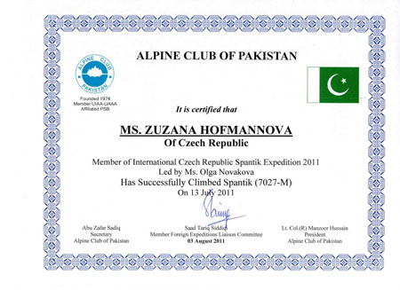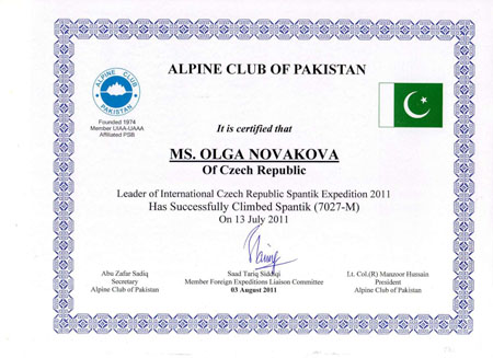Pavel Matoušek nám poslal podrobnější zprávu o výstupu Zuzky Hofmannové a Olgy Novákové na vrchol SPANTIKU 7 027 m n.m. (Pákistán), který uskutečnily dne 13.7.2011.