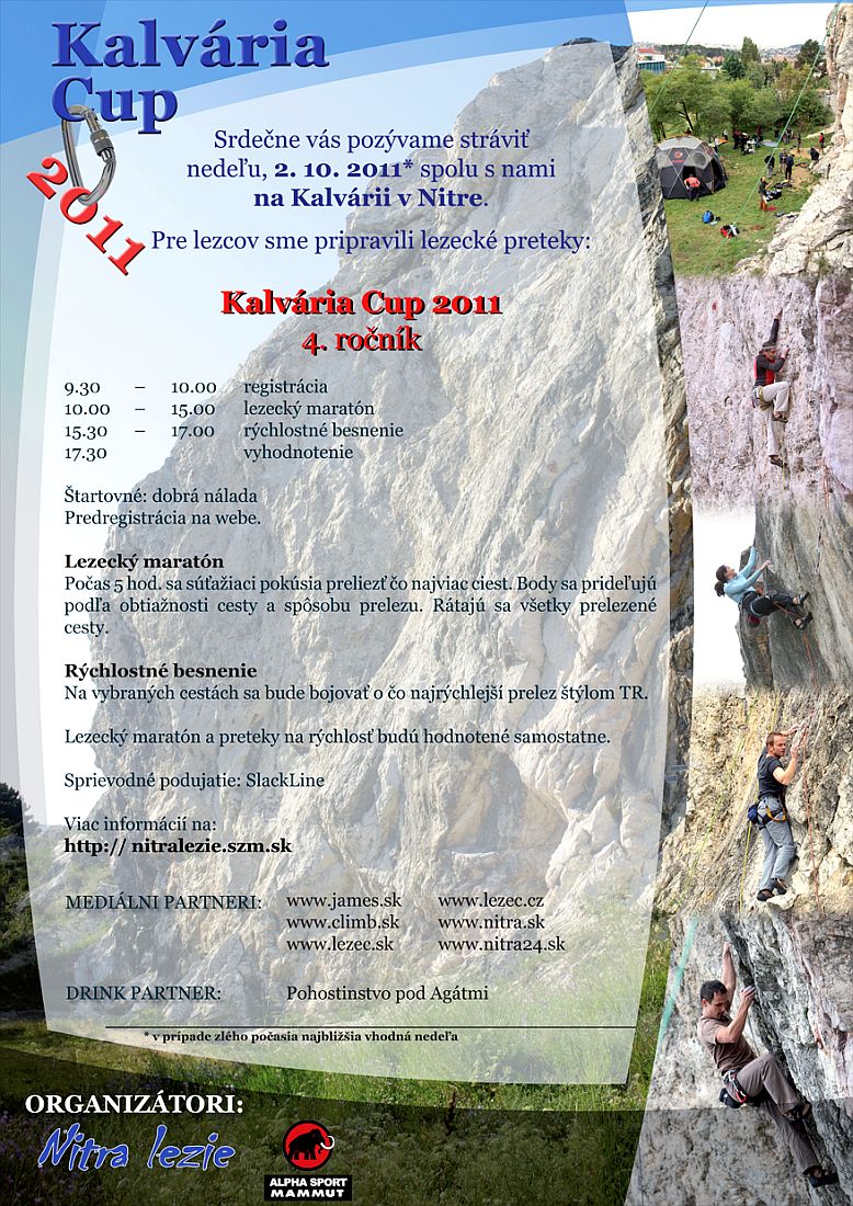 Pre lezcov sme prichystali preteky Kalvária cup 2011 (4. ročník) a pre širokú verejnosť možnosť vyskúšať si lezenie na skale na vlastnej koži.