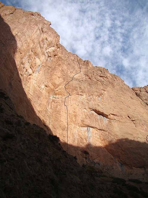 Cesta, kterou mi Toni doporučil se jmenuje Atropo.ce.ne je za 8a a nachází se na stěně Tadrarate, která se leží asi tři hodiny od Taghlie.